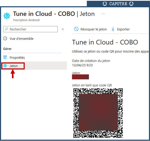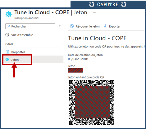 Une fois le profil d’inscription COPE créé, ce dernier apparaîtra dans la liste. Cliquer sur le profil en question et récupérer le jeton d’inscription en cliquant sur « Jeton » dans le menu latéral gauche.